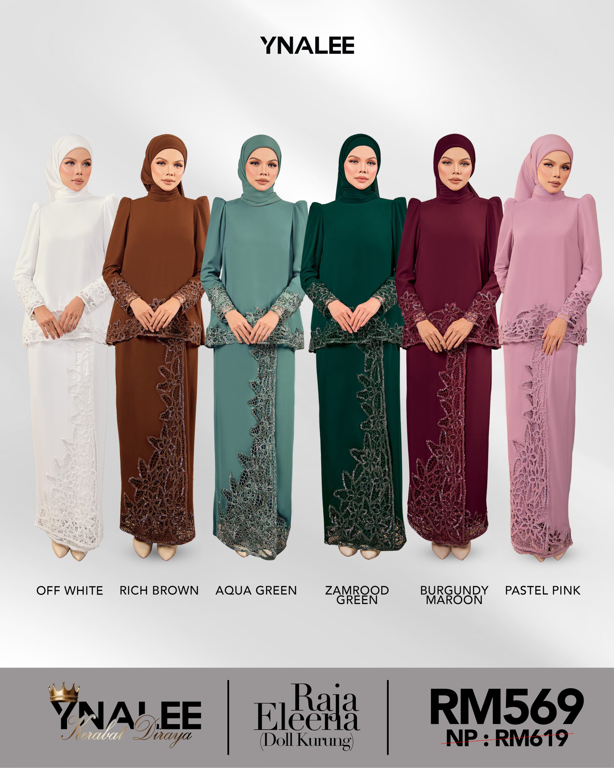 Aqua blue, Burgundy, Emerald green, Pink, Rich brown, White